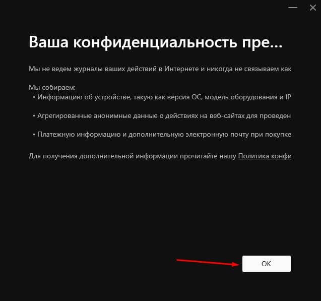 После окончания установки подтвердите свое согласие с условиями: